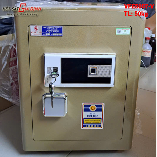 Két sắt Việt Tiệp siêu cường VFE5007-V vân tay mã số màu vàng đồng - Model mới