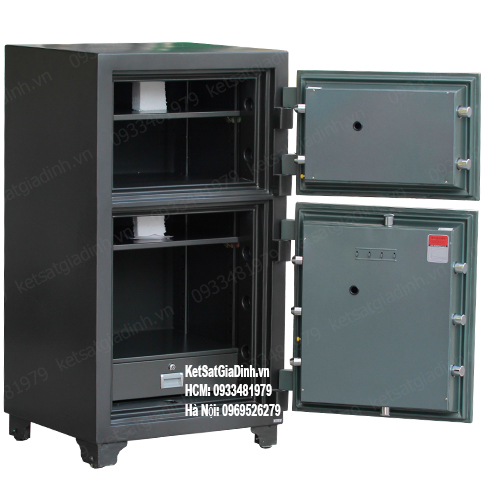 _ Tính năng: Chống cháy ở mức nhiệt độ 1030 độ trong vòng 2 giờ (đây là khả năng chống cháy cao nhất của tất cả các loại két sắt) + Chống nước.