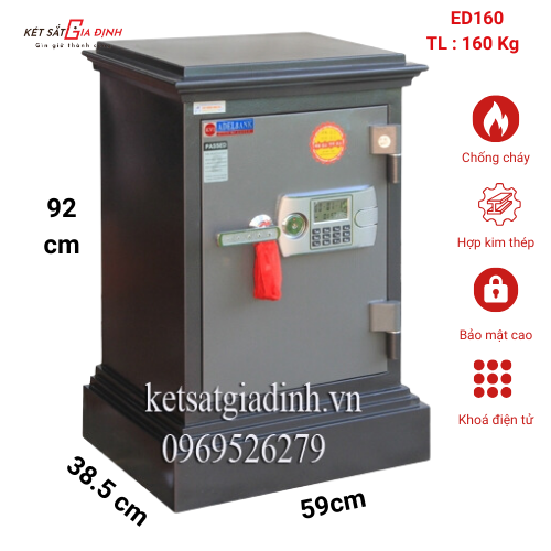 - An toàn - chống trộm: mã khóa điện tử công nghệ cao, siêu bền, báo động âm thanh cả 2 trường hợp: mở mã sai 03 lần và đập phá, dịch chuyển két.