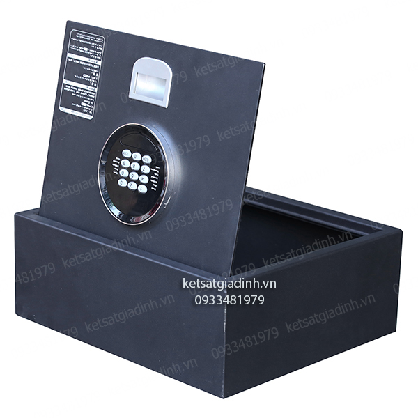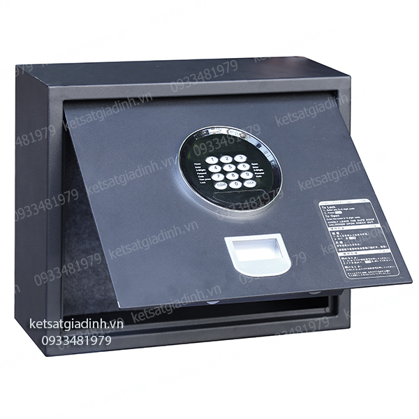 Vận hành: Khi nhấn mã mở, két tự động mở đẩy cửa lên phía trên bằng pitong thủy lực ( hỗ trợ bằng tay nếu cần). Đóng két bằng cách kéo cánh cửa xuống, nhấn lại mật khẩu kết thúc bằng nút Close.