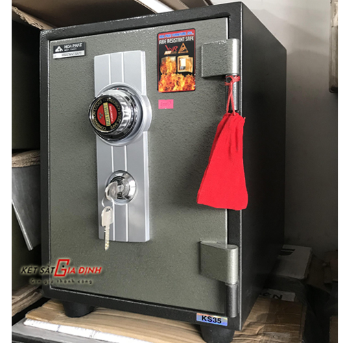 -Két sử dụng khóa chìa kết hợp với khóa cơ đổi mã ( đổi mã tùy chọn theo ý thích, không giới hạn lần đổi)Két sắt Hòa Phát The One đổi mã KS35D-DM