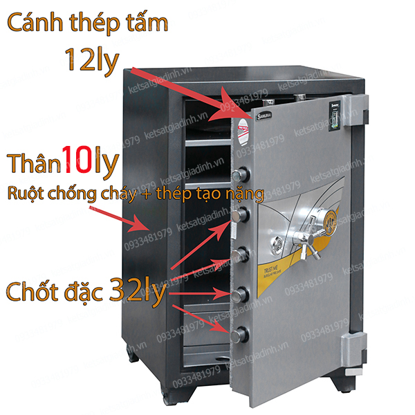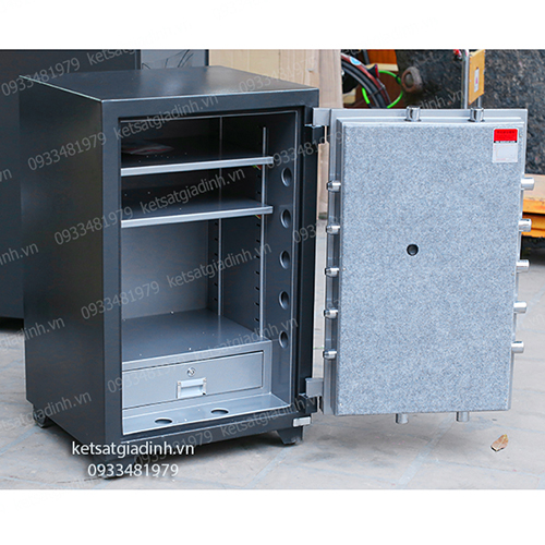 * Cấu tạo: + Thân két được chế tạo thép C45 dày 10mm nguyên khối + đá + thép hạt và hỗn hợp chất cách nhiệt chịu được nhiệt độ cao, chống đục phá tốt.