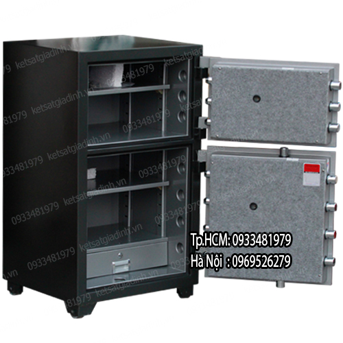 * Thông số sản phẩm: + Trọng lượng: 275kg ± 5 + Kích thước ngoài (Cao* Ngang* Sâu)mm: 950 * 550 * 490 + Kích thước sử dụng ngăn trên ( C * N * S ) mm: 270 * 425 * 350 - bên trong có 1 đợt chia ngăn di động. + Kích thước sử dụng ngăn dưới ( C * N * S ) mm: 460 * 425 * 350 - bên trong có 1 ngăn kéo cao 110mm+ 1 đợt chia ngăn di động. + Khả năng chống cháy: ~ 1050 độ C trong 120 phút. + Bảo hành tại nhà khách hàng 60 tháng kể từ ngày mua. Xuất xứ: Việt Nam - Linh kiện Hàn Quốc.